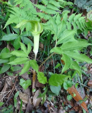 ![]() カントウマムシグサ テンナンショウ、ウラシマソウの仲間で苞は緑〜褐色 |