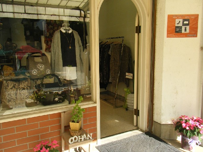 | 2014年10月下旬、湖畔商店街の一角に素敵なショーウィンドウが登場し、婦人用の衣料品を扱う『お洒落な洋服店』がオープンしました。 *店名の由来は湖畔(コハン)から。 |